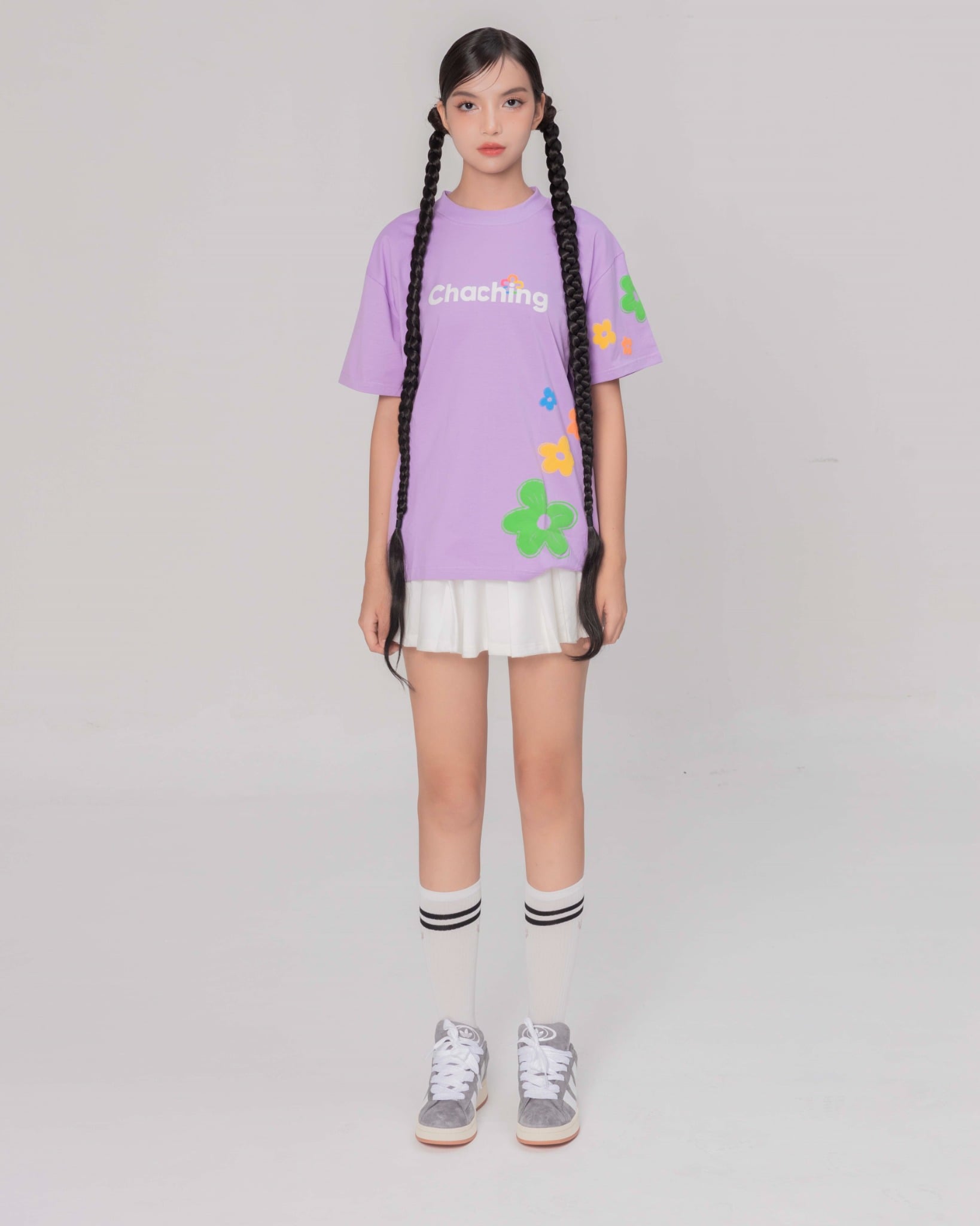 Graphic CHACHING được in cao cấp giữa áo, màu sắc graphic được in chuẩn nhất đảm bảo được chất lượng sau nhiều lần giặt