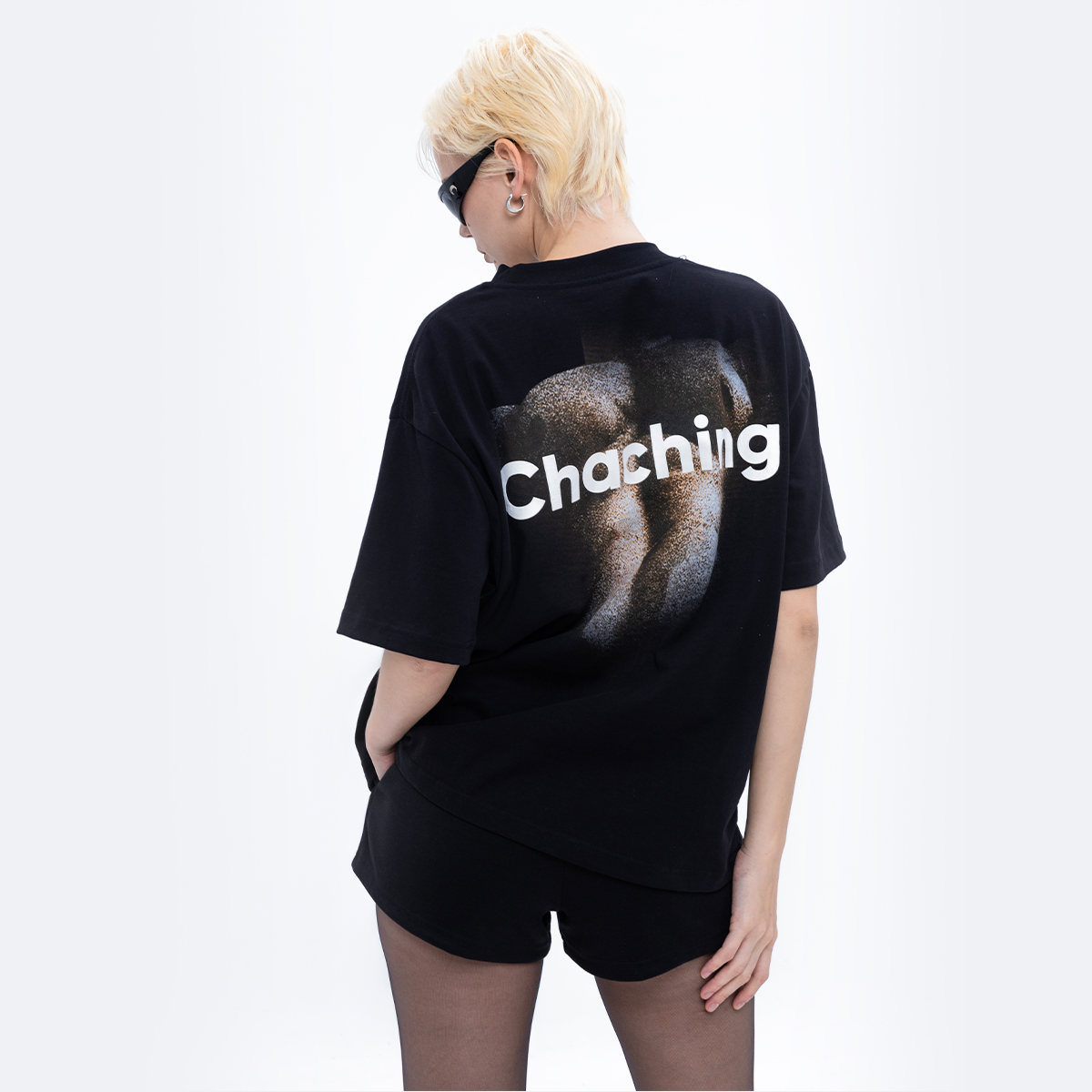 Chữ CHACHING in lụa nổi bật phía dưới, tạo tổng thể hài hòa nhưng đầy bứt phá.