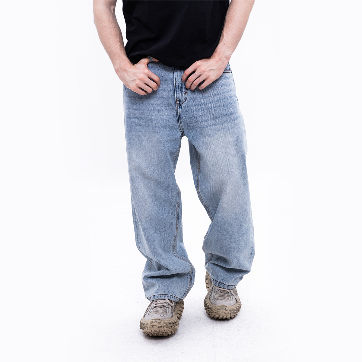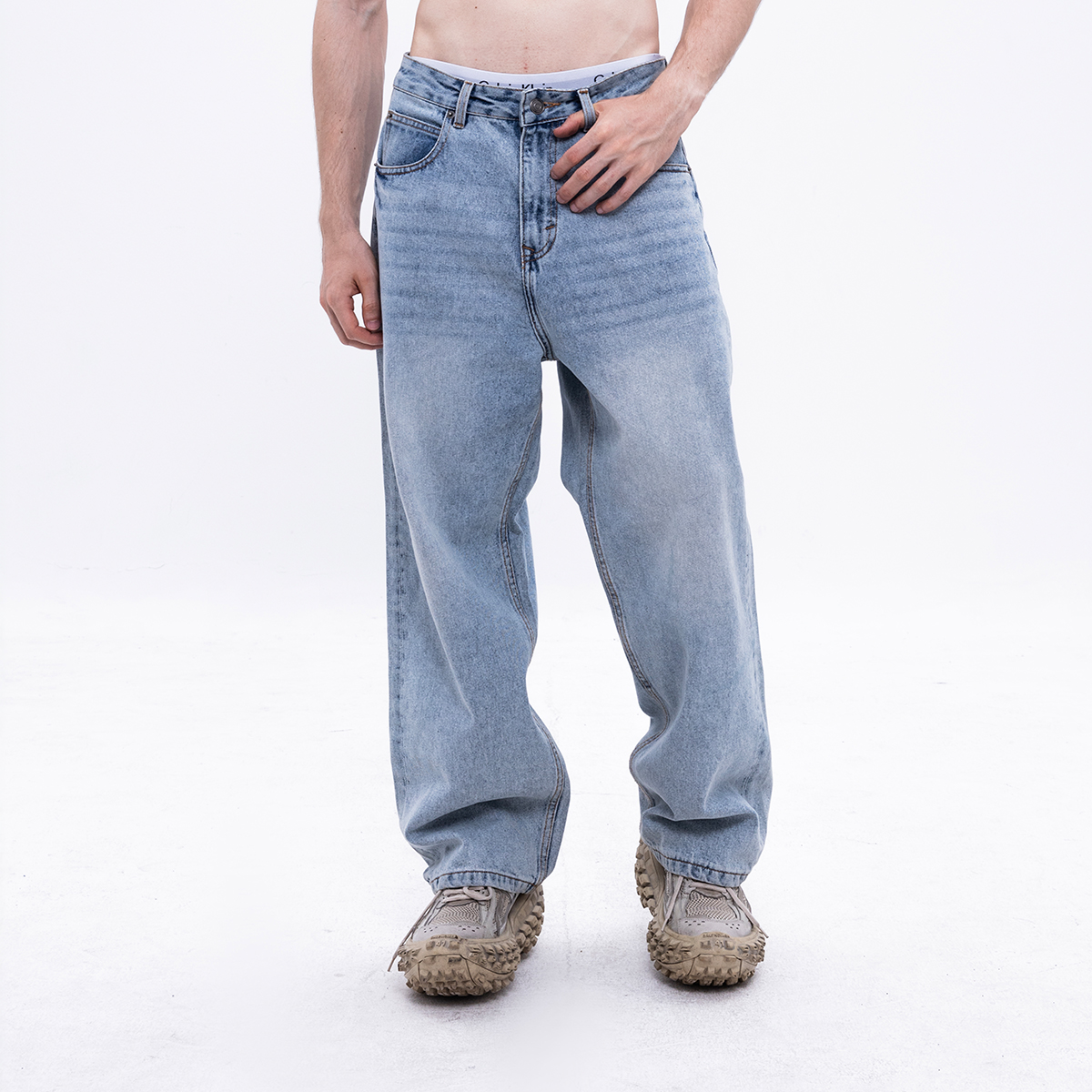 Phần ống suông rộng, kết hợp với chi tiết cạp thấp tạo hiệu ứng kéo dài chân và mang lại dáng vẻ thảnh thơi, "chất chơi" đúng tinh thần streetwear.