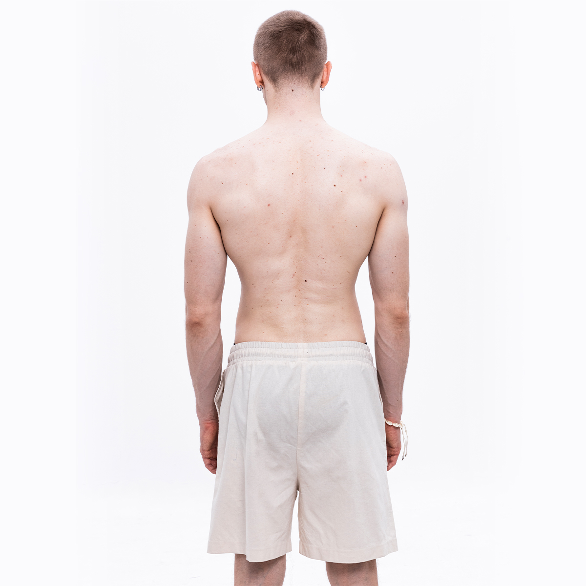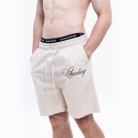 CHACHING Linen Shorts – màu Kem là thiết kế quần short tinh giản mang vẻ ngoài thanh thoát, phù hợp cho cả phong cách tối giản Nhật Bản lẫn streetwear nhẹ nhàng.