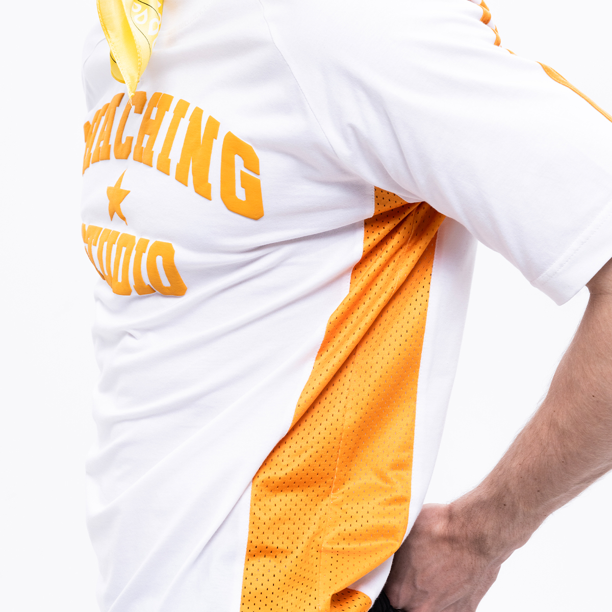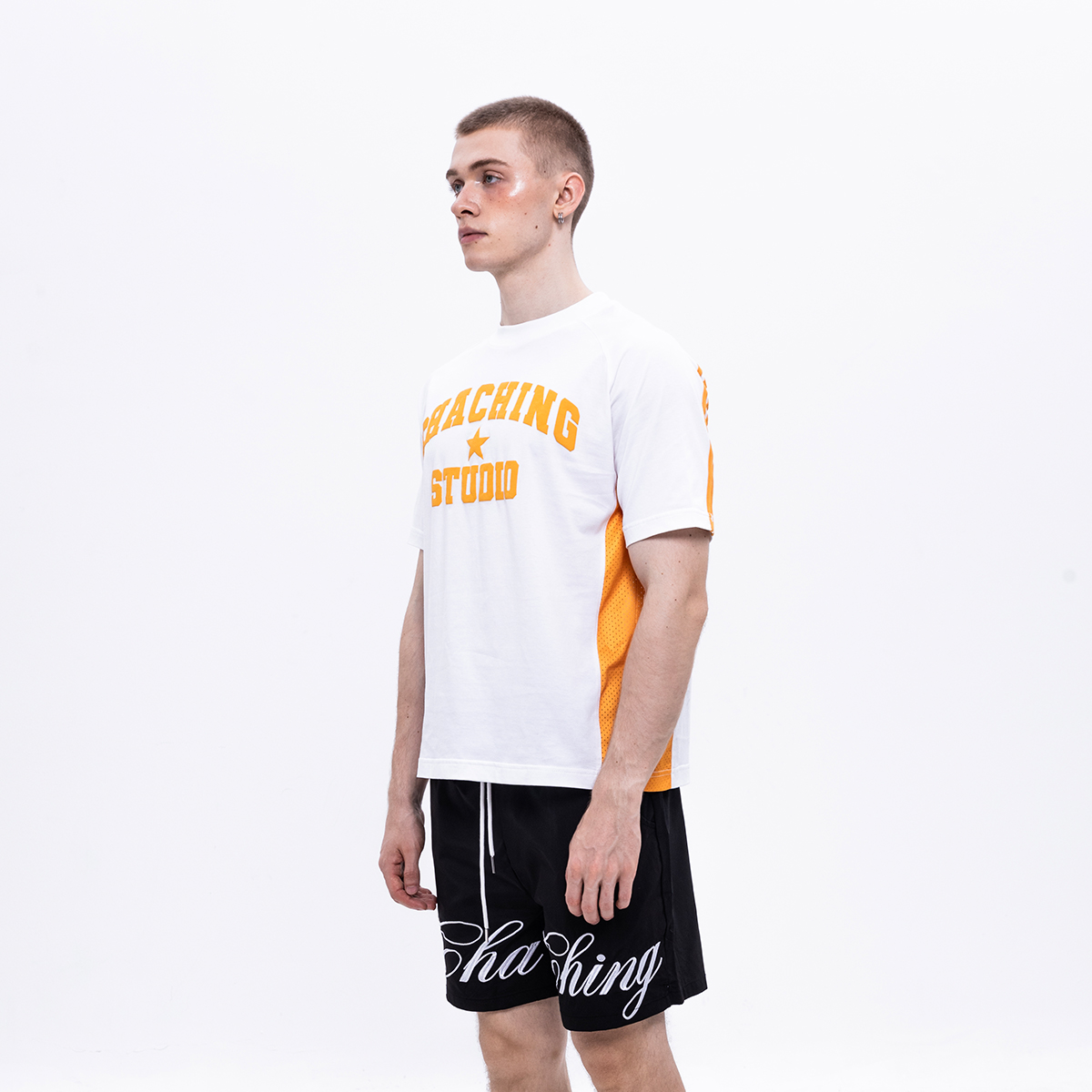 CHACHING PALM TREE T-SHIRT – Trắng phối Vàng là chiếc áo lý tưởng cho những ngày hè rực rỡ – thoáng mát, năng động và đậm tinh thần nhiệt đới.