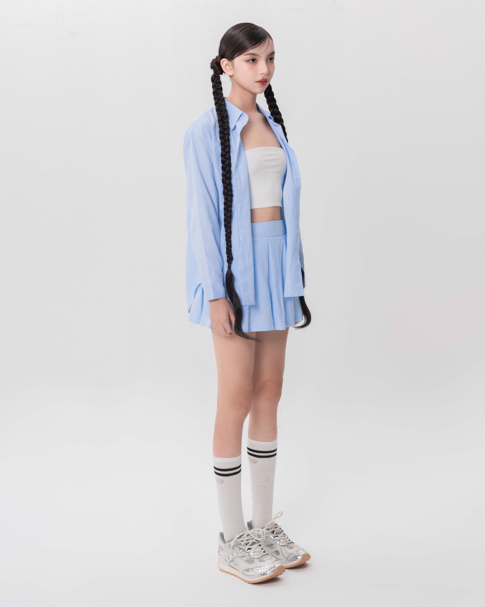 Chân váy xếp li giúp chân váy thêm phần điệu đà, nữ tính.