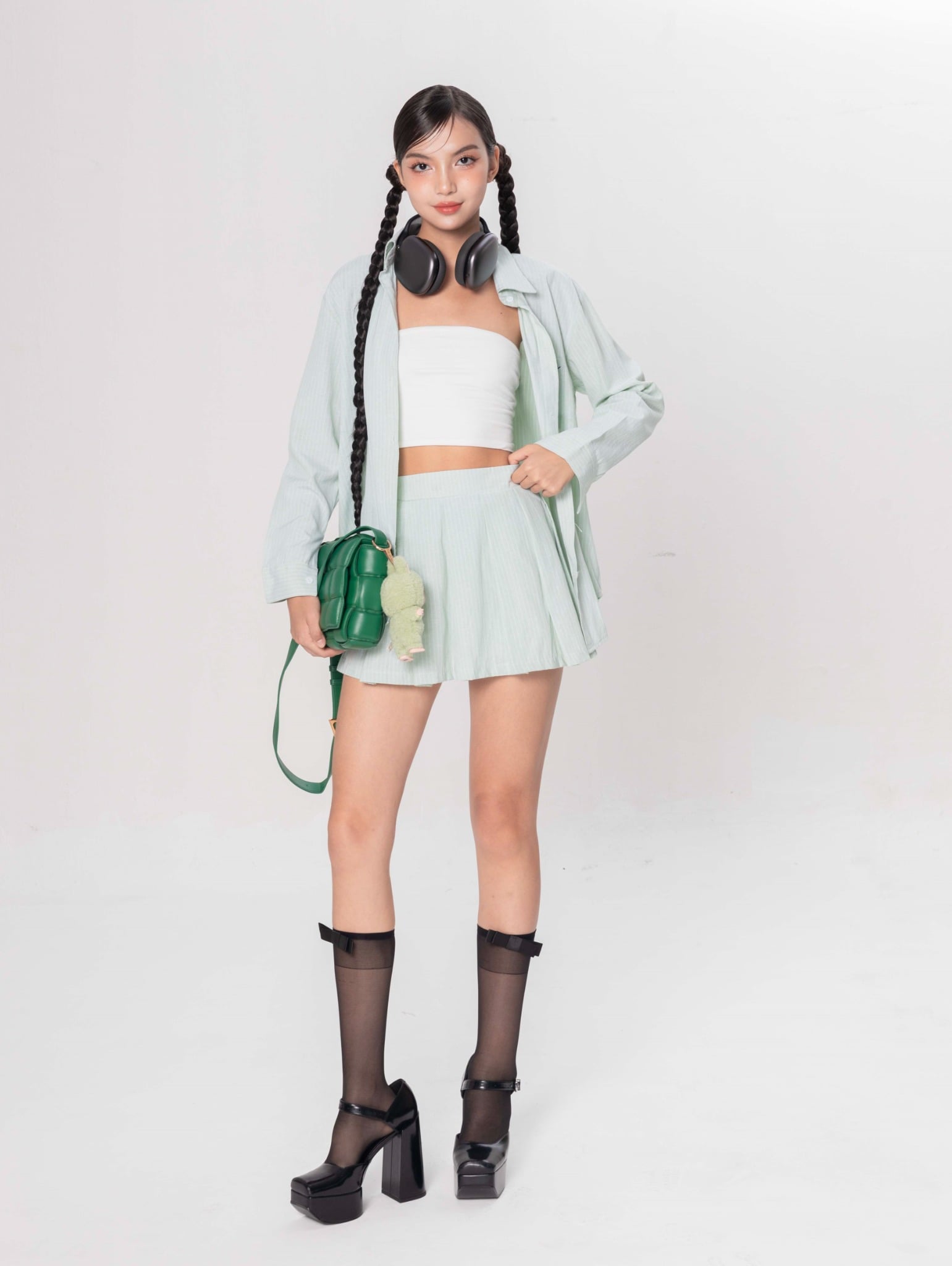 Chân váy xếp li giúp chân váy thêm phần điệu đà, nữ tính.